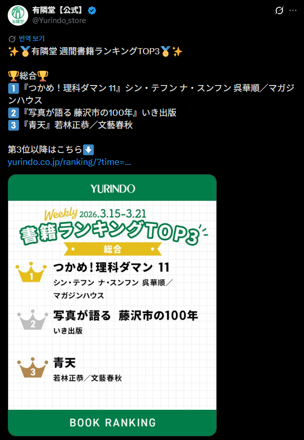 일본 대형 서점 ‘유린도’에서 우리 ‘놓지마 과학! 11: 모두가 로봇에 정신을 놓다 편’이 아동서 주간 1위를 했거든? 근데 이게 왜 진짜 대단한 건지 알아?