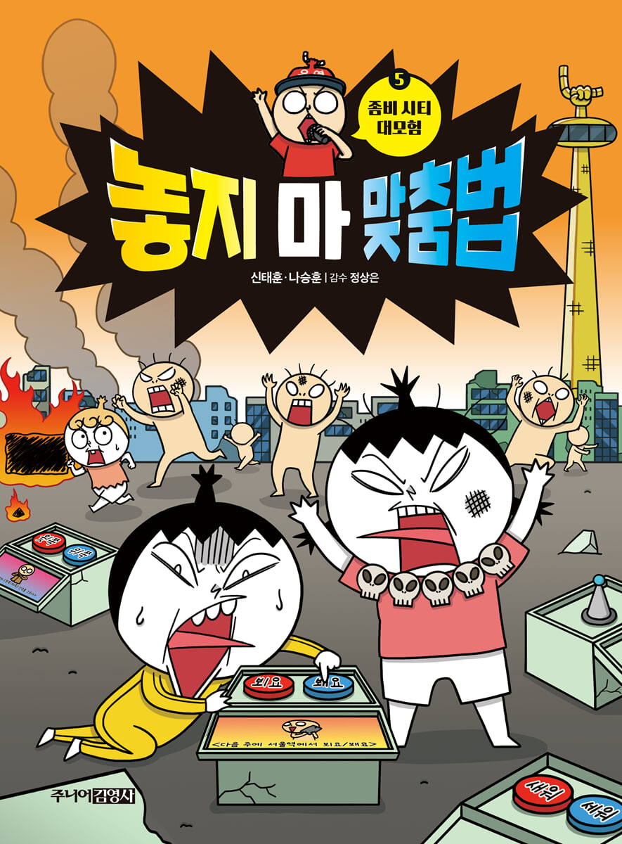 | 5권 ‘좀비 시티 대모험’에서는 마지막 생존 게임이 시작된다. 그 무대는 정신 줄 놓은 좀비들이 우글대는 ‘좀비 시티’! 최후의 승자가 되기 위해서는 끝까지 생존하여 좀비 시티의 중심부에 자리한 ‘황금 정신줄의 탑’까지 가야 한다. 생존을 위한 무기는 오로지 맞춤법 실력뿐! 숱한 위험을 뚫고 최후의 승자가 될 사람은 과연 누구인가? |